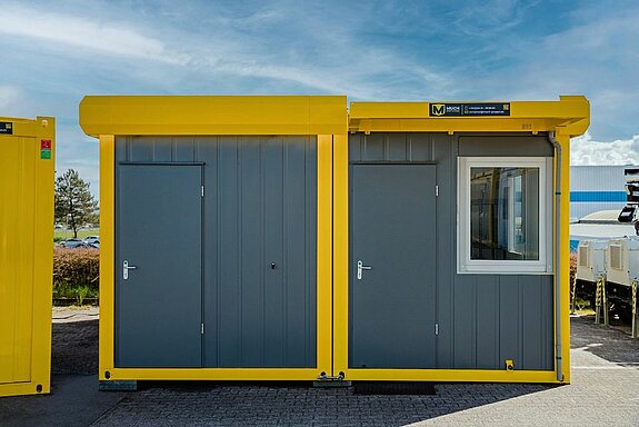 Die Anlage besteht (bspl. Fotos) aus einem 20' Raumcontainer mit WC + Dusche und einem gängigen 20' Raumcontainer.