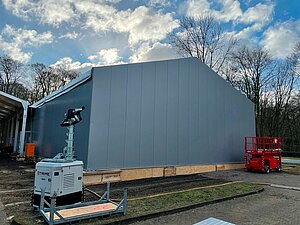Unsere Leichtbauhalle ist die effiziente Alternative zum zeit- und kostenintensiven Hallenfestbau. Es handelt sich um ein temporäres Bauwerk, das Unternehmen kurzfristig zusätzliche Flächen für Produktion, Lagerung oder Verkauf bietet. Durch die modulare Bauweise lassen sich Leichtbauhallen flexibel anpassen, erweitern und versetzen. Ob als Lagerhalle, Produktionshalle oder Überdachung – die Einsatzmöglichkeiten sind vielfältig. Die Montage erfolgt schnell und ohne Fundament, was Zeit und Kosten spart. Unsere Leichtbauhallen stehen für eine wirtschaftliche Lösung in moderner Leichtbauweise – ideal bei hoher Auslastung oder saisonalem Bedarf.